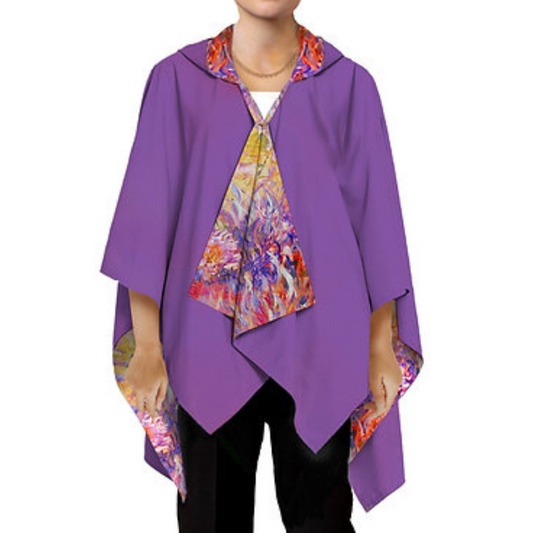 Galleria Reversible Rain Cape Magnetic Closure Monet Wisteria Free Size