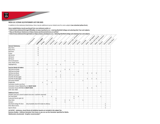 Glenfield College 2025 Stationery Pack Year 13
