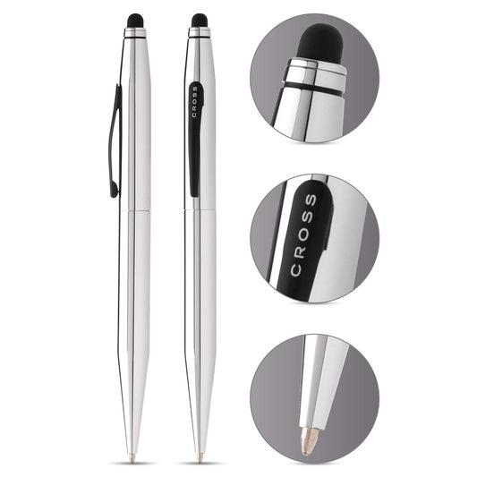 Cross Ballpoint Pen + Stylus Lustrous Chrome Tech 2 Medium Black Ink