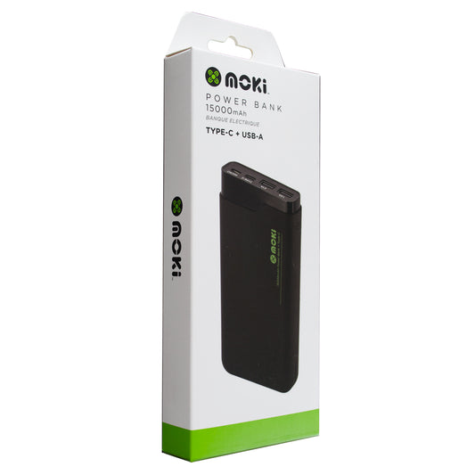 Moki Power Bank Plus 15000mAh USB + Type-C Fast Charge
