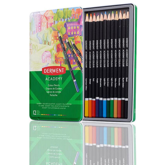 Derwent Academy Premium Coloured Pencils Tin of 12 Shades