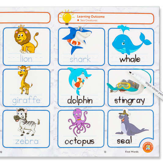 LCBF Wipe-Clean Reusable Learning Book First Words with Marker Ages 4+