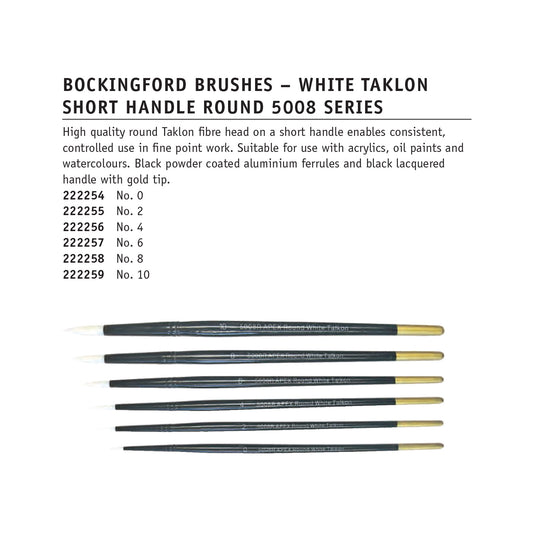 Bockingford Artists Brush 5008R No. 0 Round White Apex Taklon