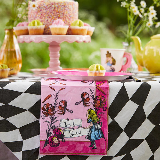 Talking Tables Alice in Wonderland Bright Pink Paper Napkins Pack of 20