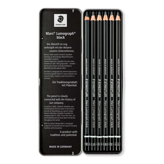 Staedtler Mars® Lumograph® Graphite Pencils 100 G6 Tin of 12 Degrees [HB - 8B]