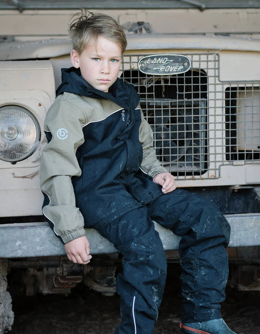 ISO940 Juniors Premium All Weather 100% Waterproof Breathable Rain Jacket Black / Mushroom